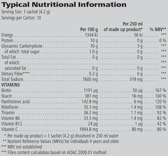 LiftOff® Max is artificial colourant and artifical flavourings free. Bursting with sharp and zesty grapefruit flavour and available in convenient individual sachets, this formula is designed to fit into your daily routine with ease.