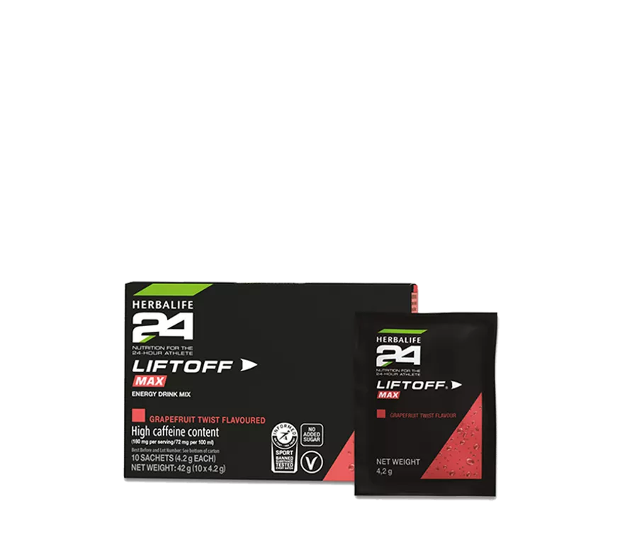 LiftOff® Max is a powdered sugar-free energy drink mix formulated with 180 milligrams of caffeine* per serving. LiftOff® Max provides vitamins B6, B12 and C to help you reach the next level in your journey.