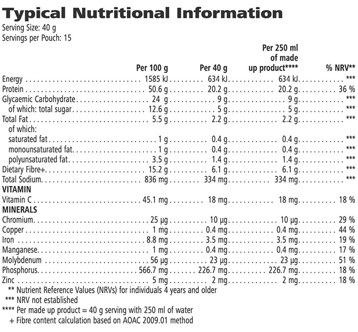 Each serving of Tri Blend Select also provides 6.1 grams of dietary fibre, Vitamin C and selected minerals. Available in 2 signature flavours, this delicious plant-based protein shake contains 5 g of sugar per serving and is artificial colourant and artificial flavourant free.